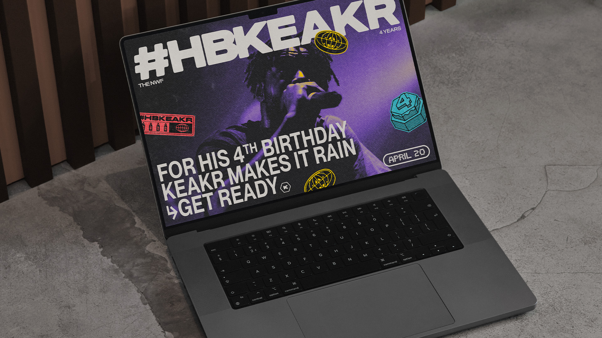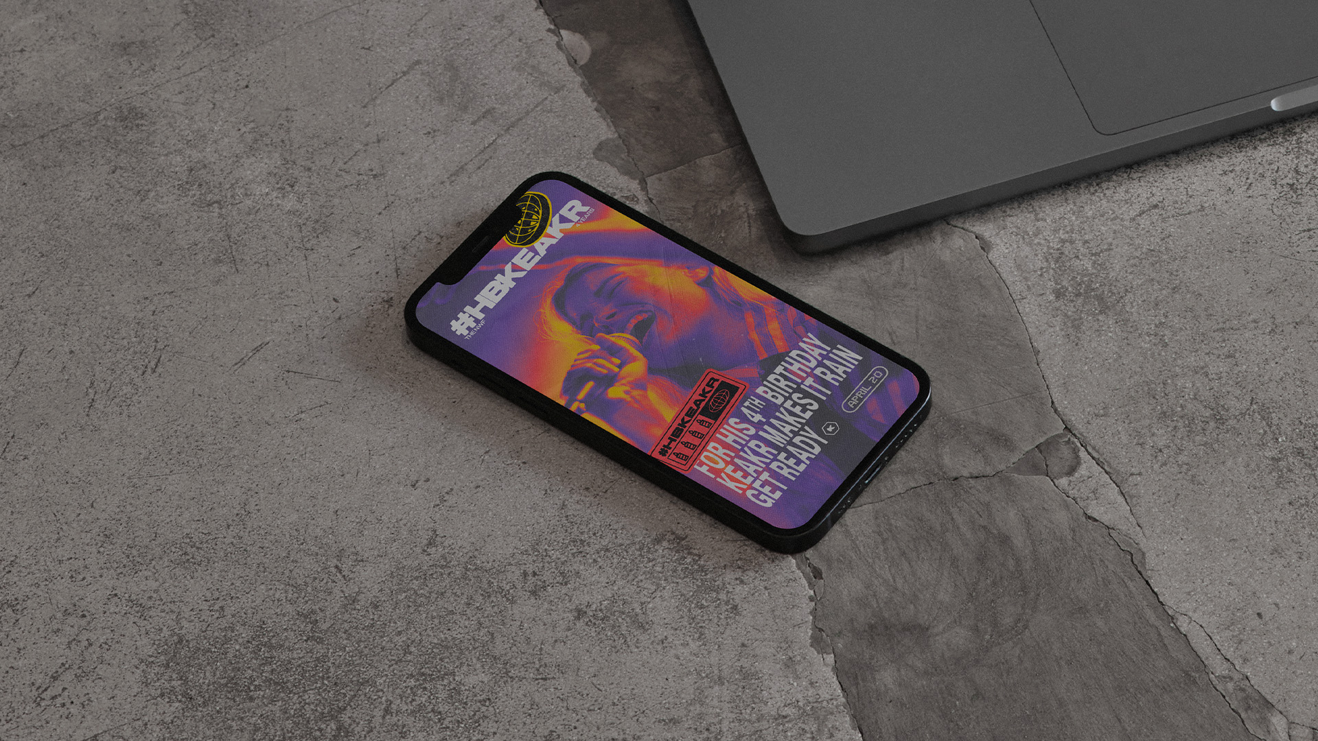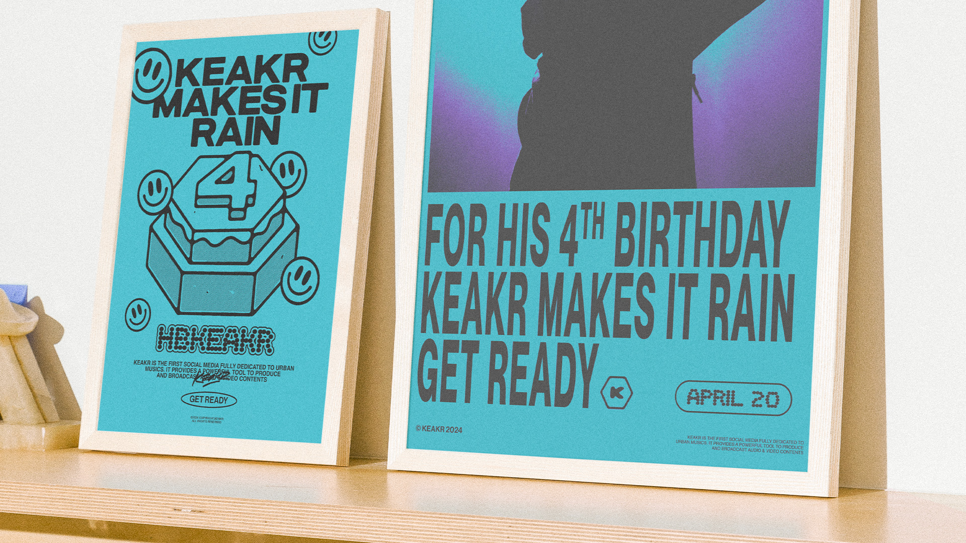 KEAKR is the first social media platform fully dedicated to urban music, offering powerful tools for creating and sharing audio and video content. However, I felt the brand’s visuals could better represent the energy and creativity of its community. So, I set out to redesign the look for KEAKR’s 4th anniversary, focusing on a bold and modern style that aligns with the dynamic world of urban music.